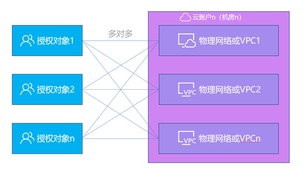 物理网络(可以理解为局域网内的某个网段,或者公有云下的VPC)授权只能获得云账户中某个区域/专有网络中的资源权限,如果网络中有新资源导入,可以动态的自动获得新资源的权限;