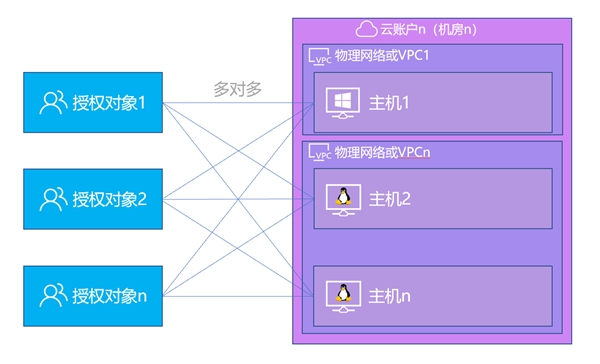 可以对云账户以及物理网络中的每台主机、数据库进行单独资源授权;