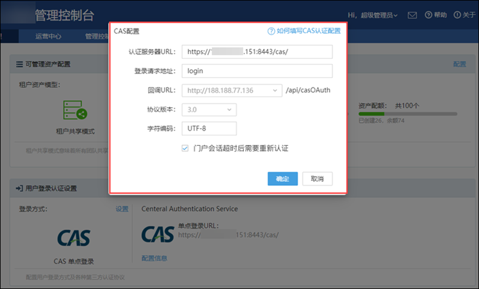 (c)回调URL:选择当前与CAS对接的行云管家门户地址;